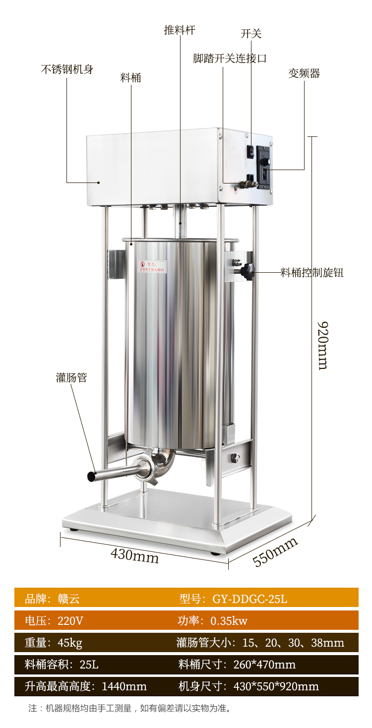 肉制品前處理->專用灌腸設(shè)備->25L電動灌腸機(jī) | |||||||