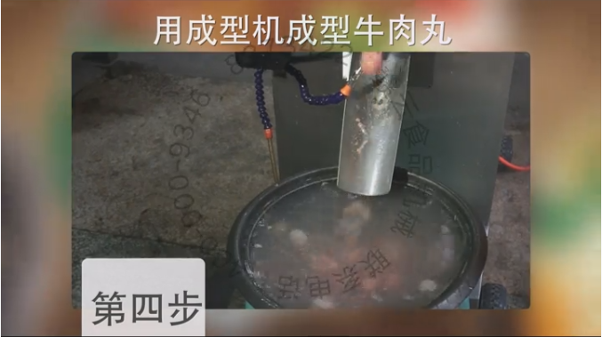 (4)制作完牛肉漿后接下來就是成型潮汕牛肉丸了,成型牛肉丸可以選擇一臺(tái)實(shí)心潮汕牛肉丸成型機(jī)或者一臺(tái)包心肉丸成型機(jī),可根據(jù)出料模板控制牛肉丸的大小,生成的牛肉丸大小均勻個(gè)體完整,成型速度快成產(chǎn)效率高。 觀看成型視頻