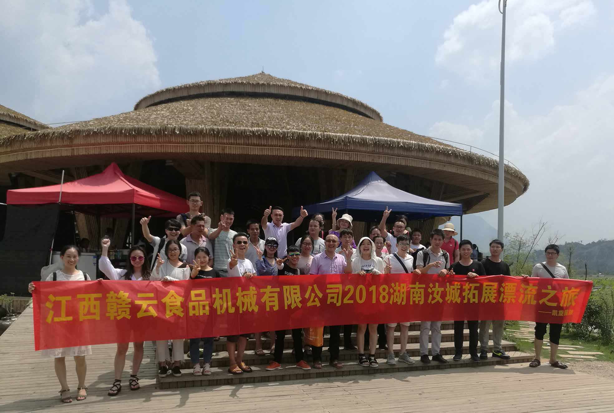中午,大家集合聚餐。在農(nóng)家的院子里,體驗(yàn)鄉(xiāng)村的生活,大家互相交流情感。吃了農(nóng)家菜之后,便開始走上了漂流之旅,此次漂流的地點(diǎn)是在湖南汝城熱水河漂流,兩岸青山依依,竹海呢喃,自然形成的青石河,小橋、古樹、田野、村莊,無限風(fēng)光。大家駕駛著雙人座特制橡皮艇,穿峽谷、越險(xiǎn)灘,時(shí)兒急流激蕩,時(shí)兒緩流輕越,迎面而來的是一種其樂無窮的驚、險(xiǎn)、奇。在比較平緩的水灘上大家在享受優(yōu)美自然景色,打水仗等,同時(shí),也不忘留影紀(jì)念,這次旅游不但營造了和諧融洽的集體氣氛,而且增進(jìn)了彼此的情感。